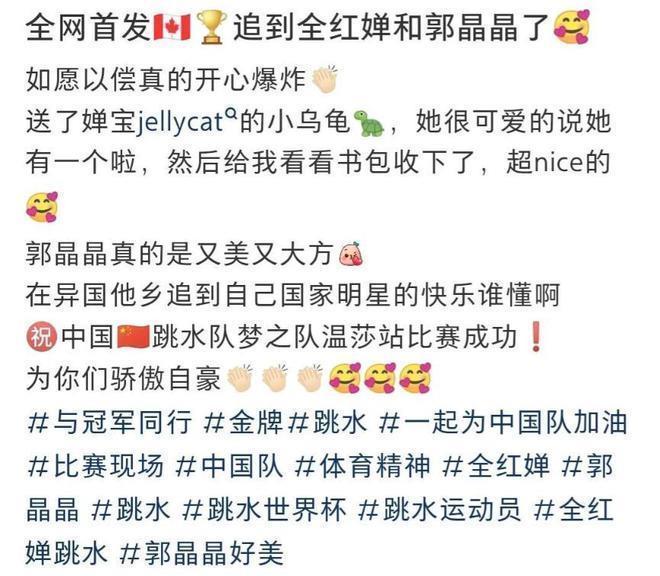 不过有一个网友最让人羡慕,她不仅和婵宝一起合了影,还见到了郭晶晶,与郭晶晶也合了张影。